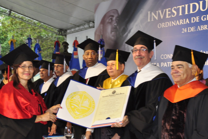 SANTO DOMINGO (R.D.).-La estudiante de Derecho Santa Moris de la Rosa se graduó Magna Cum Laude, con un índice académico de 93.7, en la ceremonia