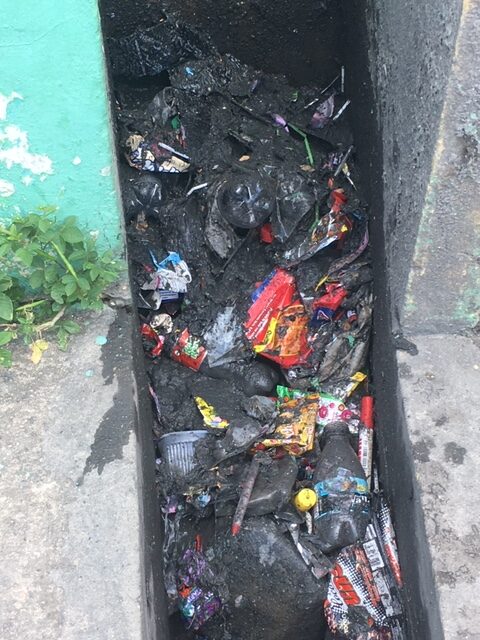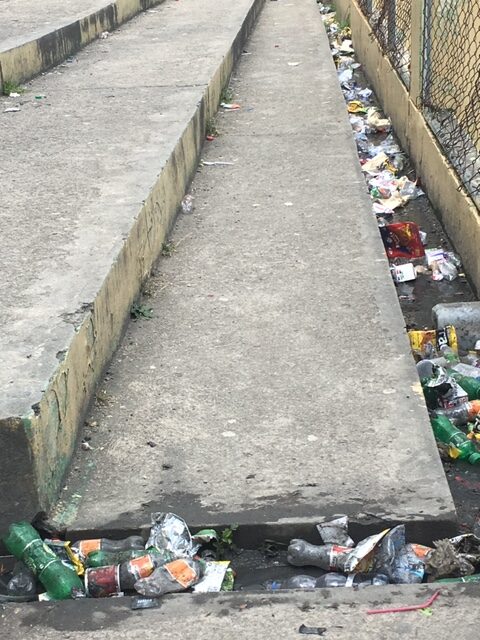 Aunque el plantel exhibe áreas limpias, la basura y las aguas pestilentes se acumulan alrededor del área de la cancha, como pudieron comprobar familiares de los estudiantes que acudieron a una actividad de padres y alumnos.