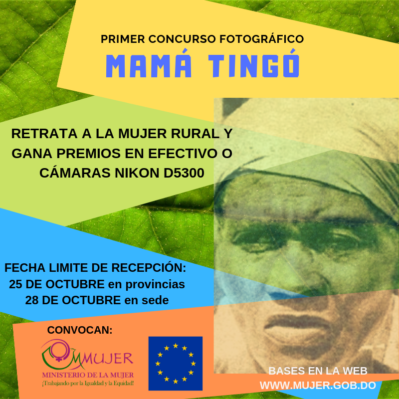 SANTO DOMINGO (RD).-El Ministerio de la Mujer y la Delegación de la Unión Europea en la República Dominicana convocan a fotógrafos (as) profesionales y aficionados a participar en el Primer Concurso Fotográfico Mamá Tingó enfocado en visibilizar la mujer del campo en su entorno y mostrar las distintas facetas en que se desarrolla en el siglo XXI.