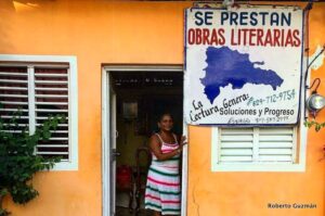 En alguna calle sin nombre de Río San Juan un letrero en un poste de luz invita al transeúnte a su casa, donde otro letrero indica: “La lectura genera soluciones y progreso” y reafirma el mensaje: se prestan libros. Así, sin más. Solo por la cara.