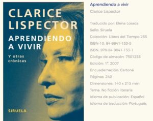 Inciso II. Yo misma, recientemente en la librería con el libro de Lispector en la mano. Presa, emocionada. Profundamente emocionada. Ahora vuelva al primer párrafo de este texto.