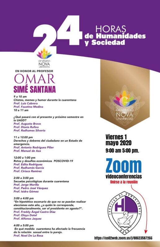 Medina (el profesor, no el Presidente), participó en la conferencia online “Chistes, memes y humor durante la cuarentena”. La actividad inició la participación de los docentes en la teleconferencia “24 horas de Humanidades y Sociedad”, organizada por la UASD en honor al profesor Omar Simé Santana.