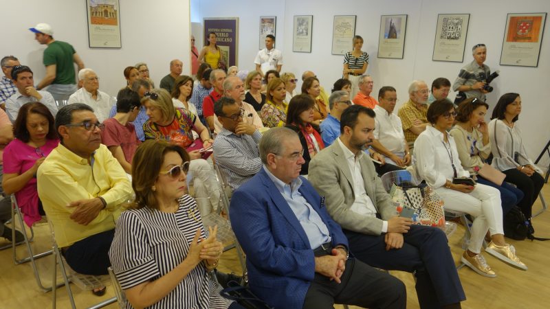 Durante el acto, realizado en el pabellón de la República Dominicana, Delgado Malagón y el poeta José Mármol dialogaron sobre la obra auspiciada por el Banco Popular.