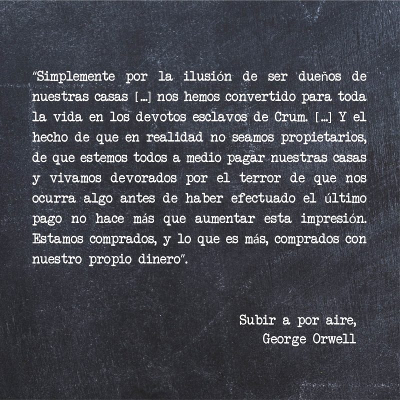 Recientemente leí la novela “Subir a por aire”, de George Orwell, y desde entonces no he logrado que algunos de sus pasajes se me borren de la retina. Por un lado, porque no dejo de pensar en la condición de la clase media (que es la mía propia), nuestros miedos a que nos roben o a perder lo adquirido (“las buenas costumbres”, la "categoría”, las cosas que decimos adquirir con tanto esfuerzo y un tanto de suerte) que no es más que el equivalente a una existencia tan precaria como aquello a lo que más tememos: volver a ser pobres, si alguna vez lo fuimos, o convertirnos en pobres, si no lo fuimos nunca.