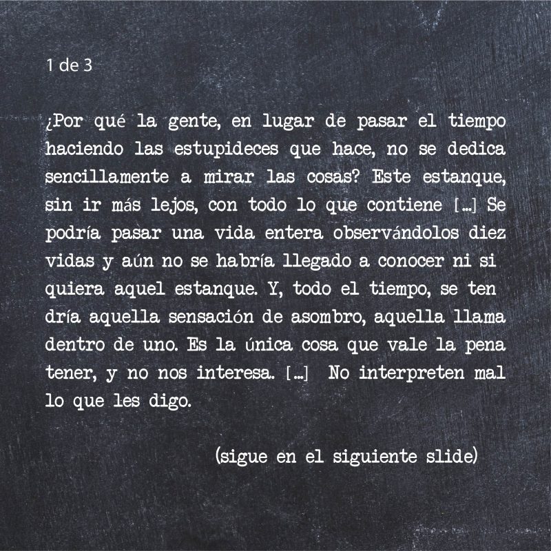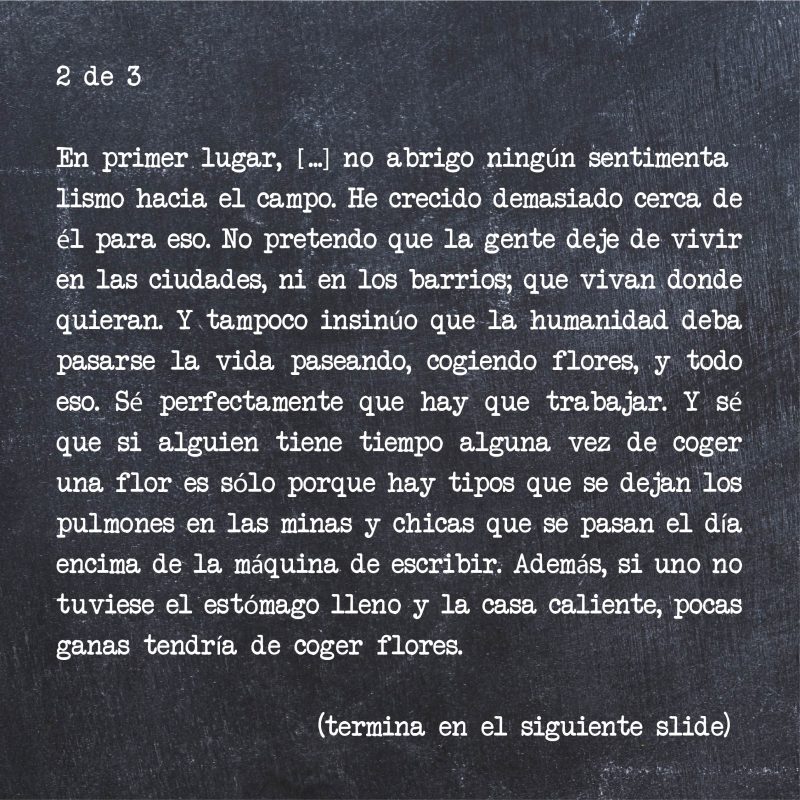 "Hay algo que hemos perdido […], una especie de fluido vital que se nos ha evaporado hasta no quedar nada. ¡Todo este correr de aquí para allá! La eterna lucha por un poco de dinero, el eterno rugir de los autobuses, las bombas, las radios, los teléfonos… Tenemos los nervios destrozados; nuestros huesos, donde debería estar la médula, están vacíos".