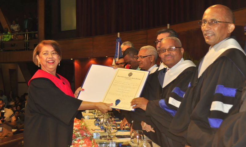 SANTO DOMINGO (RD).-La Universidad Autónoma de Santo Domingo (UASD) otorgó un reconocimiento especial a la jueza María Del Carmen del Corazón De Jesús De Moya